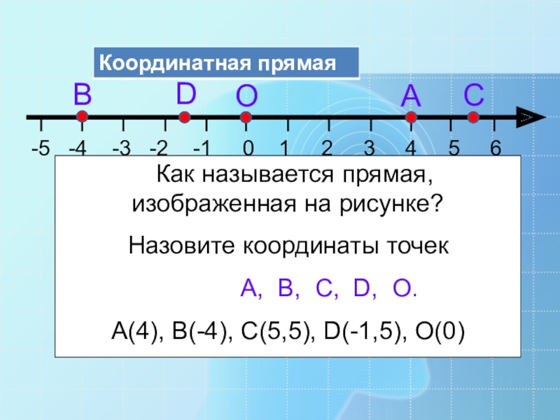 А(4), В(-4), С(5,5), D(-1,5), О(0)