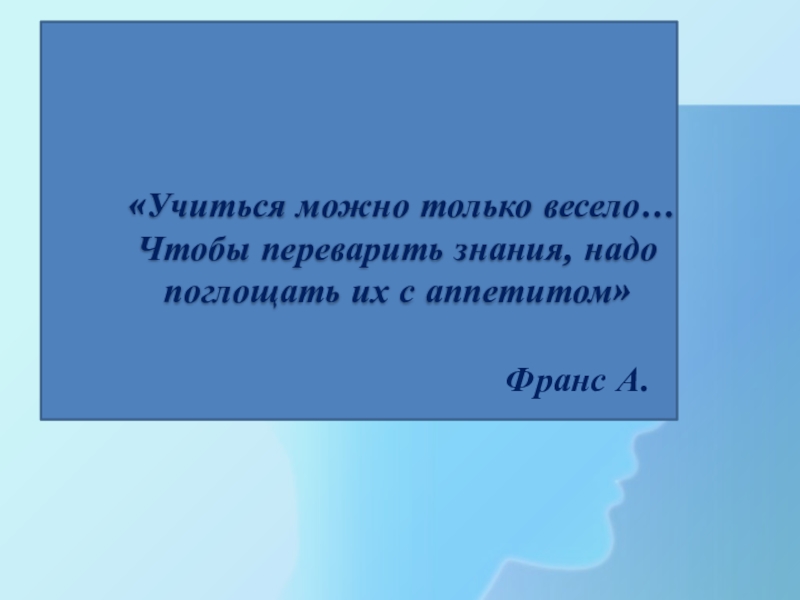 «Учиться можно только весело… Чтобы переварить знания, надо поглощать их