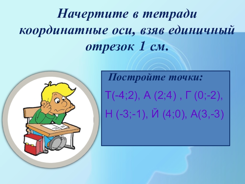 Начертите в тетради координатные оси, взяв единичный отрезок 1 см.