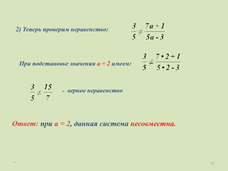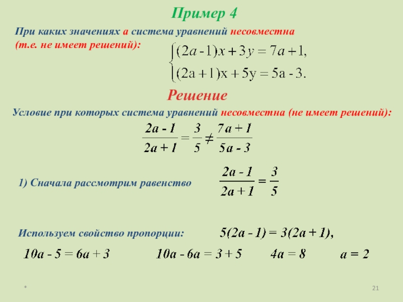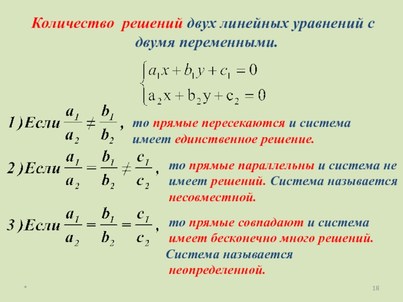 Условие при которых система уравнений несовместна (не имеет решений):