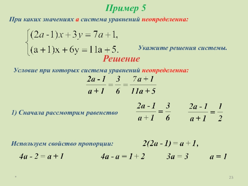 При подстановке значения а = 1 в данную систему имеем: