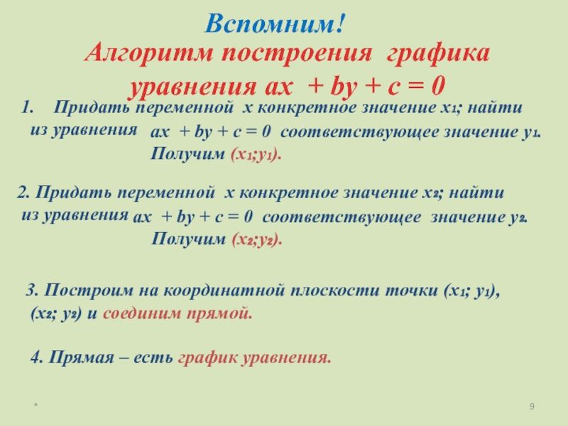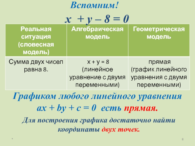 4. Прямая – есть график уравнения.