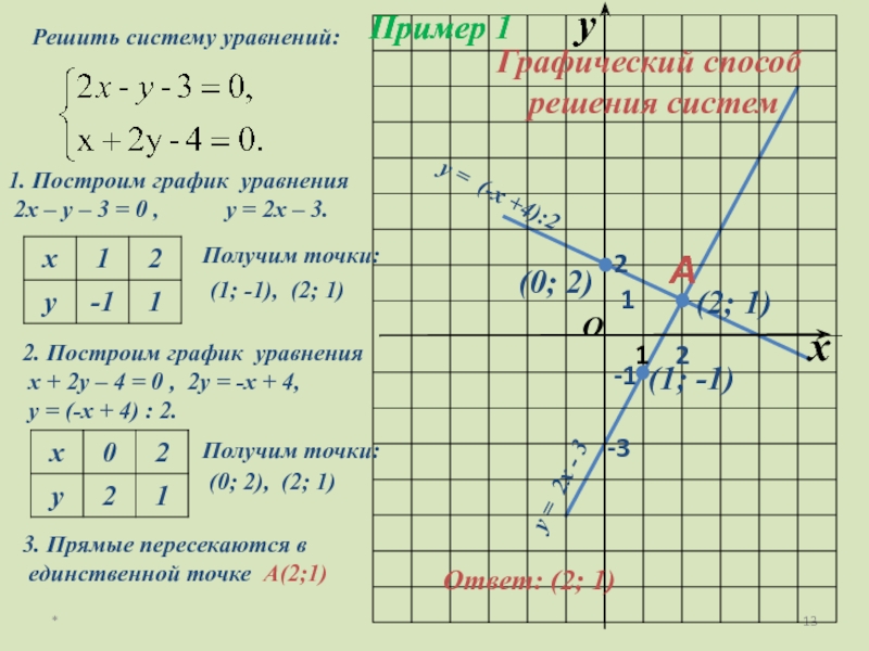 единственной точке А(2;1)
