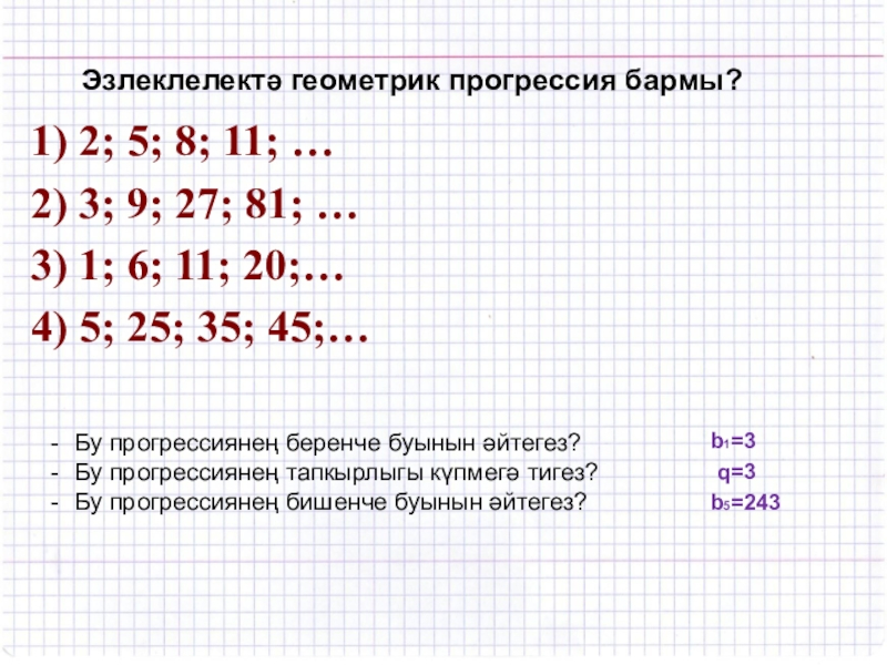 Бу прогрессиянең тапкырлыгы күпмегә тигез?