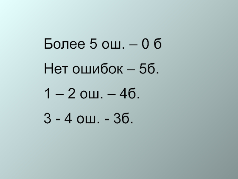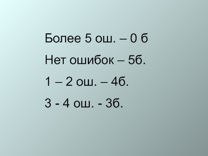 Более 5 ош. – 0 бНет ошибок – 5б.1 – 2 ош. – 4б.3 - 4 ош.