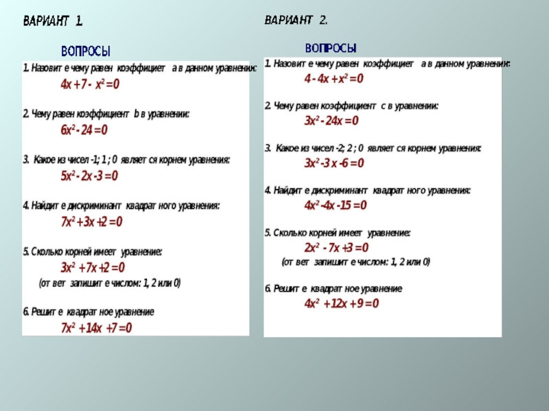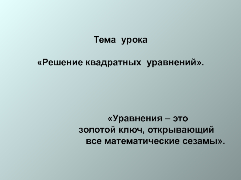 Презентация, доклад урока на тему Квадратные уравнения (8 класс)