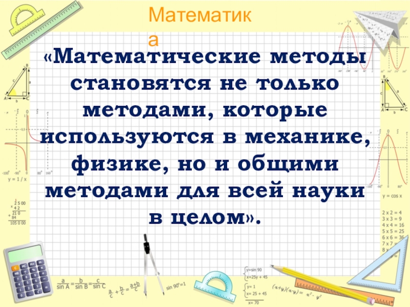 Слайд 19«Математические методы становятся не только методами, которые используются в механике, физике,