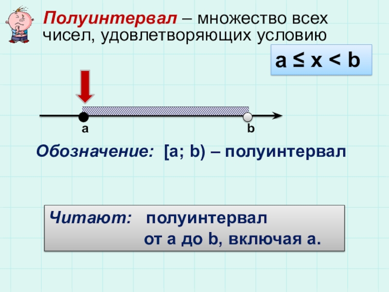 Полуинтервал – множество всех чисел, удовлетворяющих условию