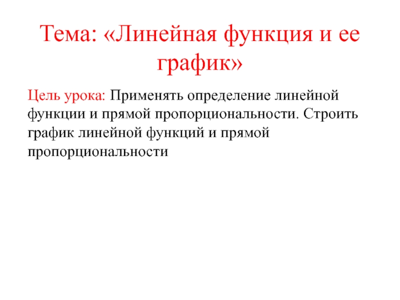 и прямой пропорциональности. Строить график линейной функций и прямой пропорциональности