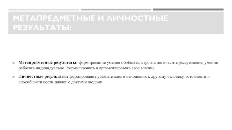Слайд 3Метапредметные и личностные результаты: