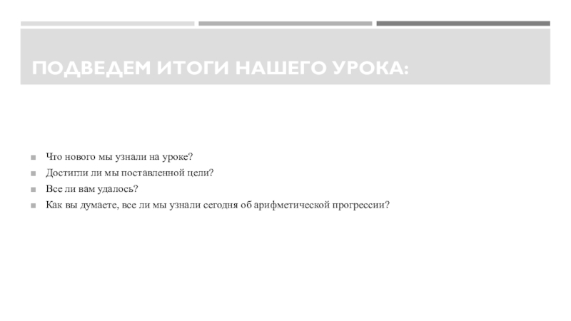 Как вы думаете, все ли мы узнали сегодня об арифметической прогрессии?