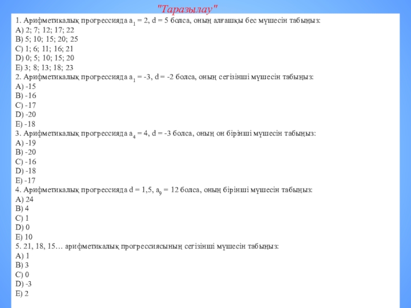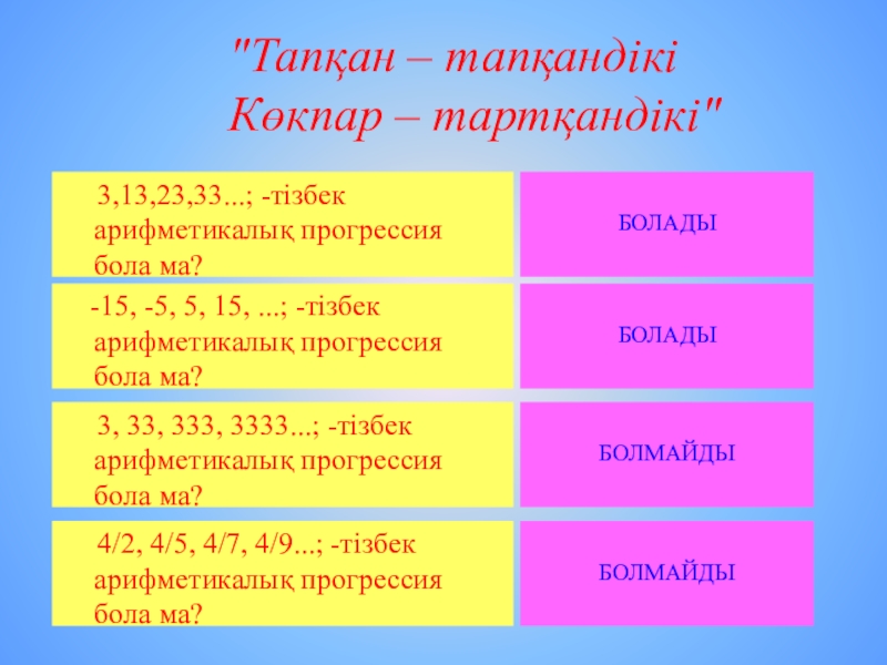 -10, -2, 5, 13, ...; -тізбек арифметикалық прогрессия бола ма?