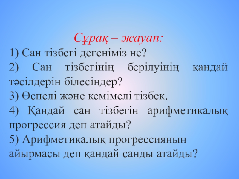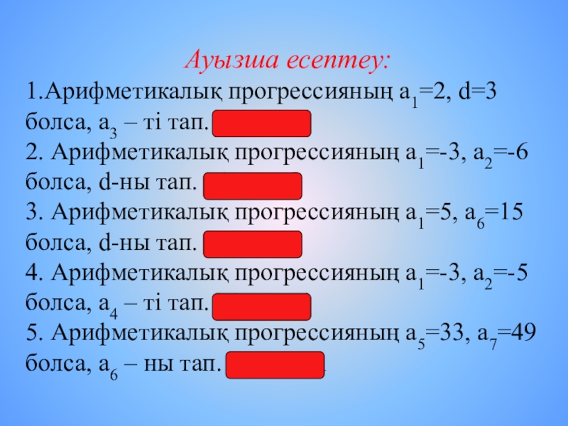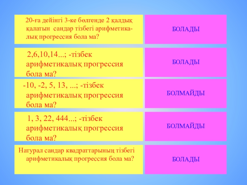 20-ға дейінгі 3-ке бөлгенде 2 қалдық қалатын сандар тізбегі арифметика-лық прогрессия бола ма?