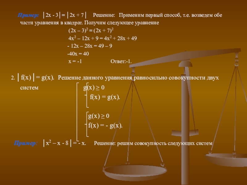 Метод интервалов для уравнений с неизвестным под знаком модуля.