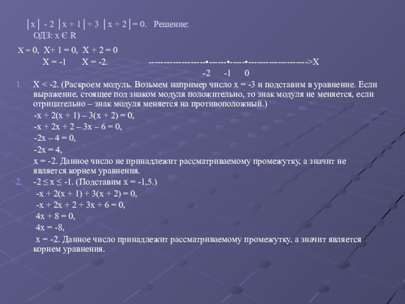Х = -1 Х = -2. -------------------•------•-----•-------------------->Х