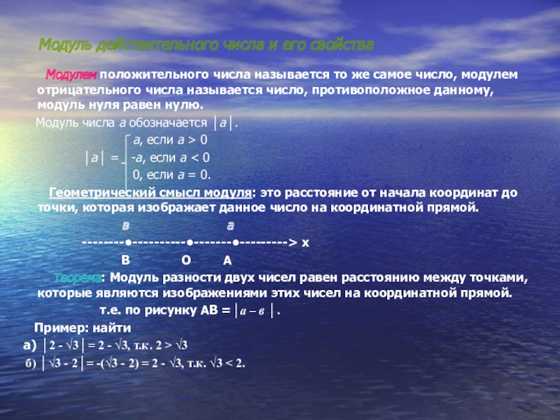 7. Знак разности модулей двух выражений, совпадает со знаком разности квадратов этих выражений.