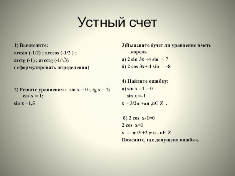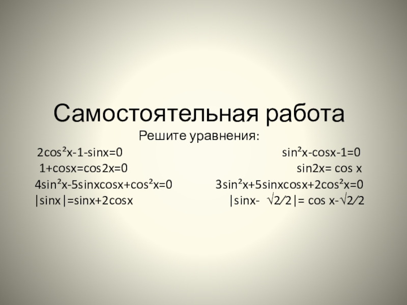 Слайд 1ТРИГОНОМЕТРИЧЕСКИЕ УРАВНЕНИЯ.