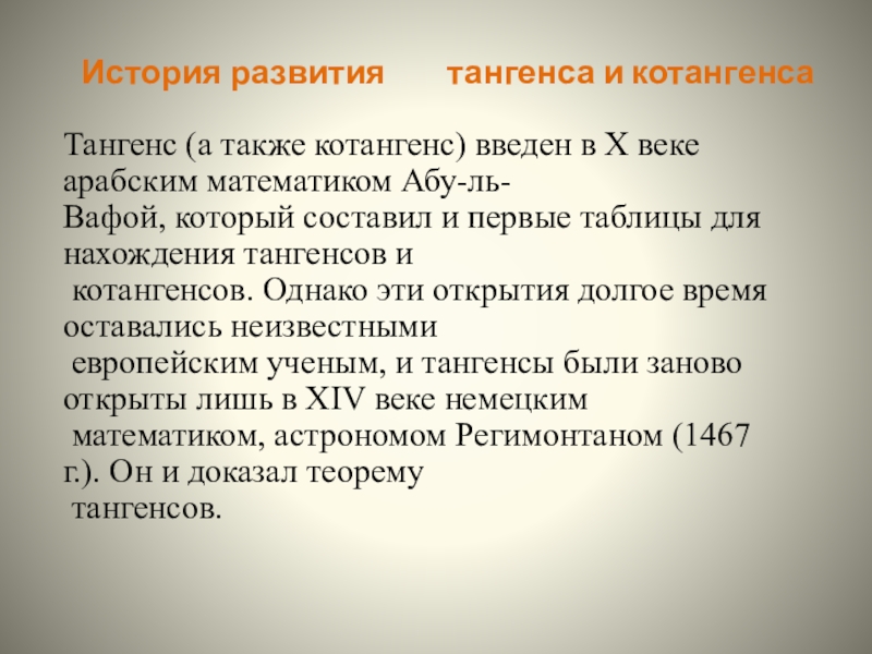 котангенс) введен в X веке арабским математиком Абу-ль-