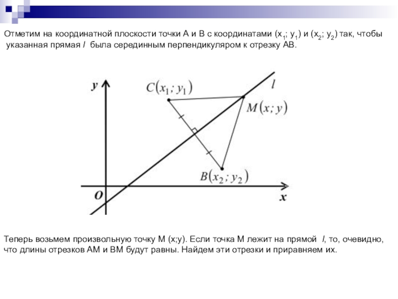 Теперь возьмем произвольную точку M (x;y). Если точка M лежит на прямой l, то, очевидно,