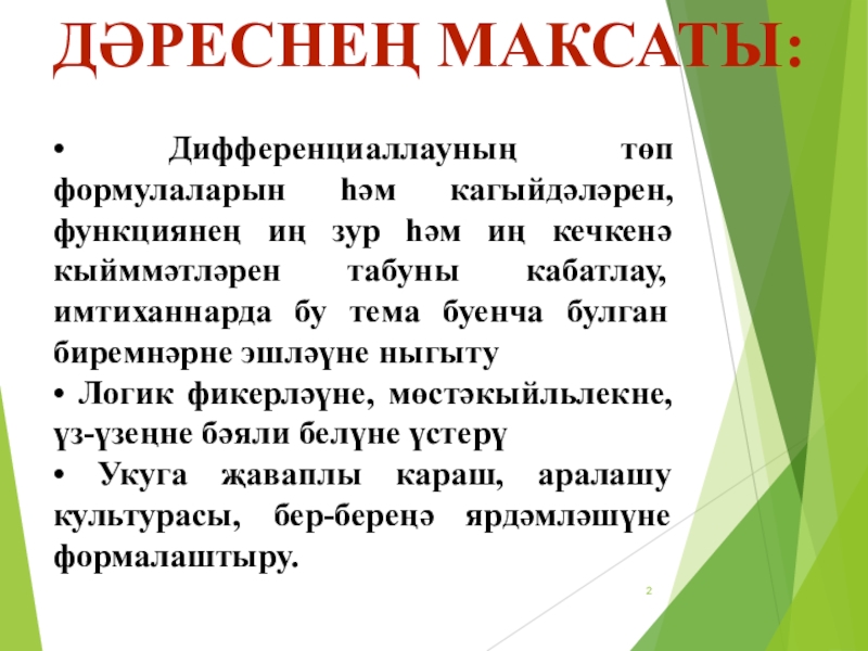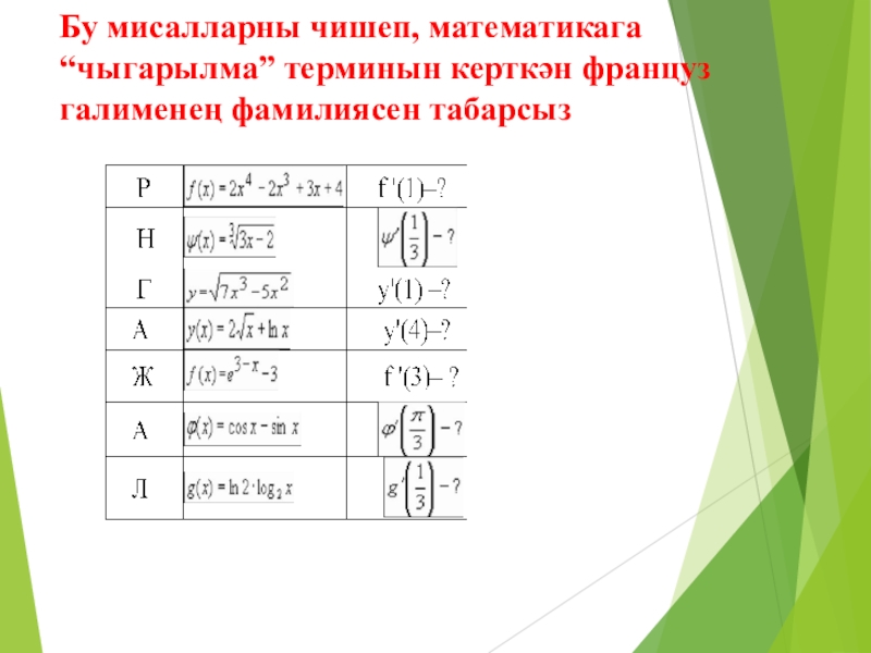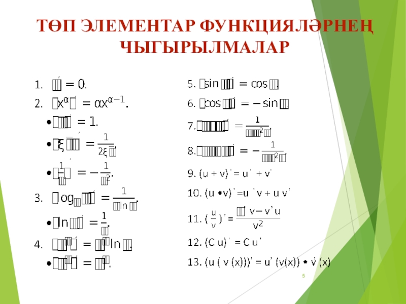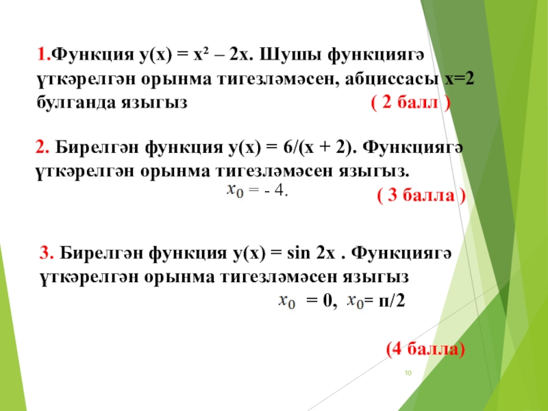 3. Бирелгән функция у(x) = sin 2x . Функциягә үткәрелгән орынма тигезләмәсен языгыз