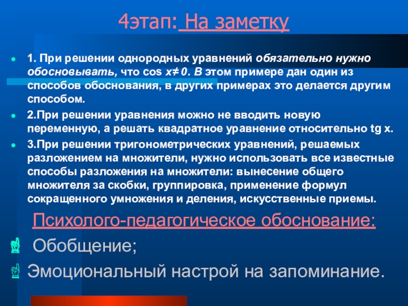 1. При решении однородных уравнений обязательно нужно обосновывать, что