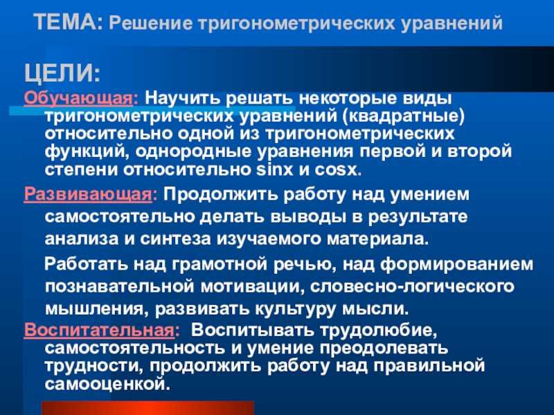 Слайд 2ТЕМА: Решение тригонометрических уравнений