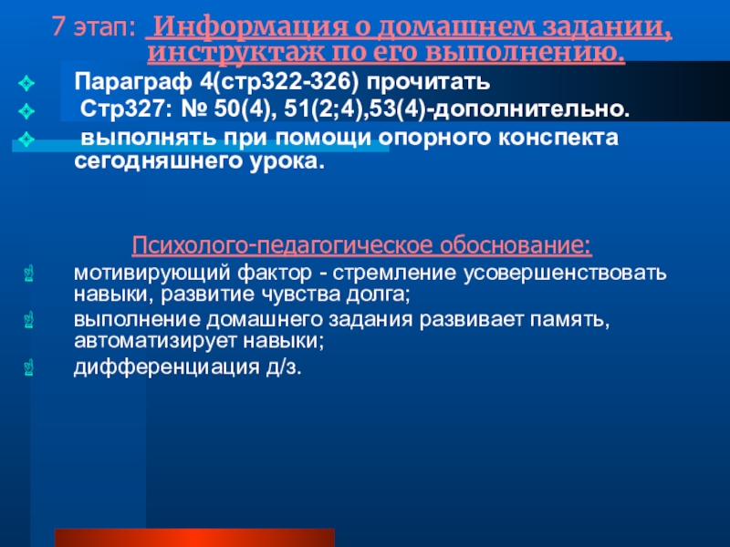 Слайд 157 этап: Информация о домашнем задании, инструктаж по его выполнению.