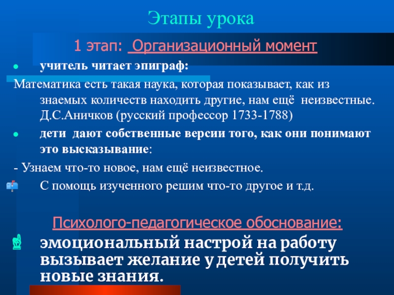 эмоциональный настрой на работу вызывает желание у детей получить новые знания.