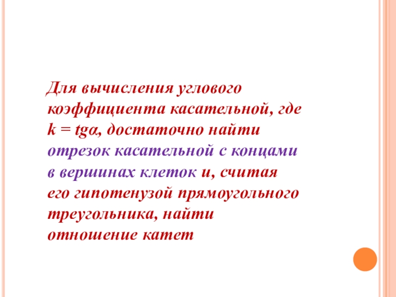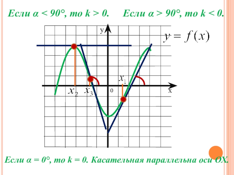 Если α = 0°, то k = 0. Касательная параллельна оси ОХ.