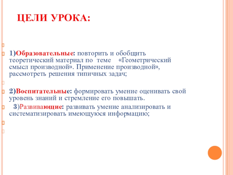 ГЕОМЕТРИЧЕСКИЙ СМЫСЛ ПРОИЗВОДНОЙ
