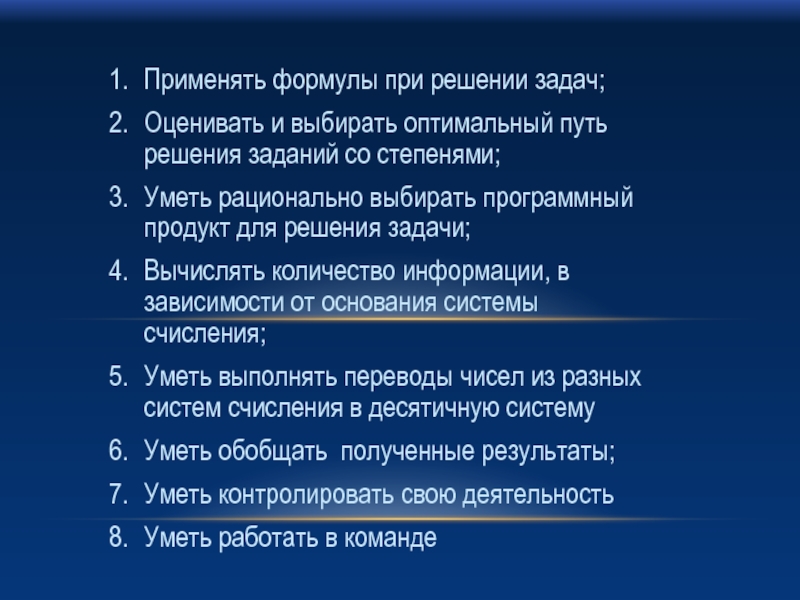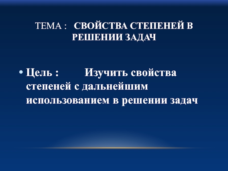 Изучить свойства степеней с дальнейшим использованием в решении задач