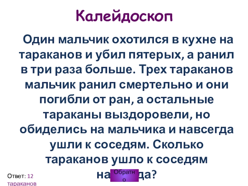 Ответ: 12 тараканов