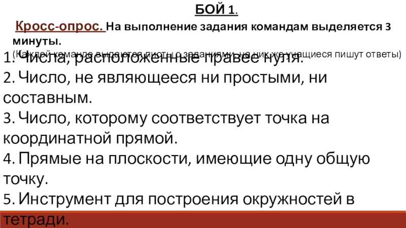 Кросс-опрос. На выполнение задания командам выделяется 3 минуты.