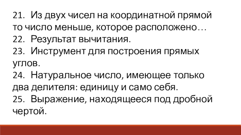 24. Натуральное число, имеющее только два делителя: единицу и само себя.