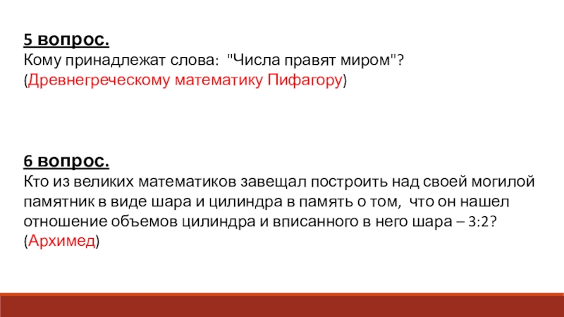 Кому принадлежат слова: "Числа правят миром"? (Древнегреческому математику