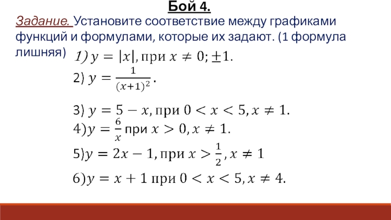 Слайд 22Задание. Установите соответствие между графиками функций и формулами, которые их задают.