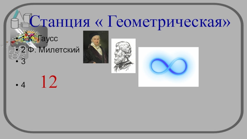 Станция « Геометрическая»1 К. Гаусс2 Ф. Милетский34   12