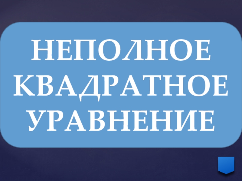 НЕПОЛНОЕ КВАДРАТНОЕ УРАВНЕНИЕ