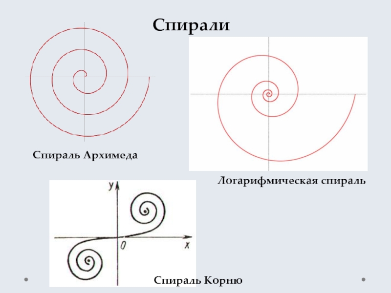 СпиралиСпираль АрхимедаЛогарифмическая спиральСпираль Корню