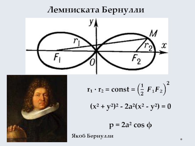 Лемниската БернуллиЯкоб Бернулли(х² + у²)² - 2а²(х² - у²) = 0р = 2а² cos ϕ