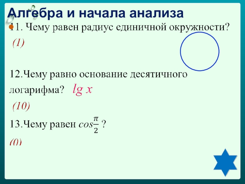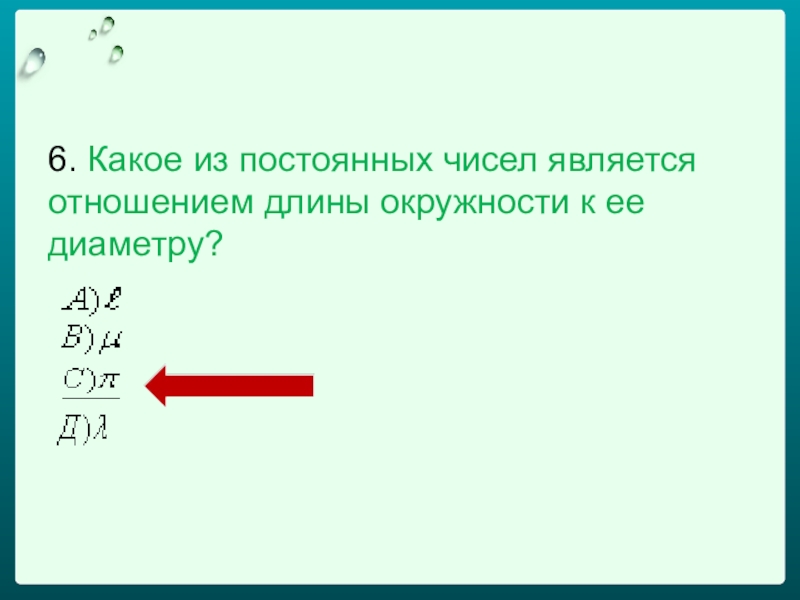 6. Какое из постоянных чисел является отношением длины окружности к ее