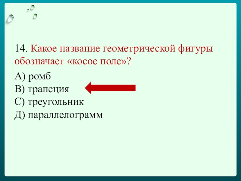 14. Какое название геометрической фигуры обозначает «косое поле»?