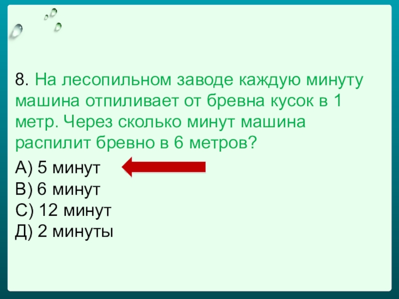 8. На лесопильном заводе каждую минуту машина отпиливает от бревна кусок