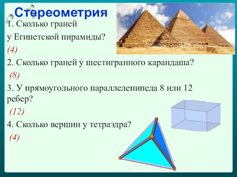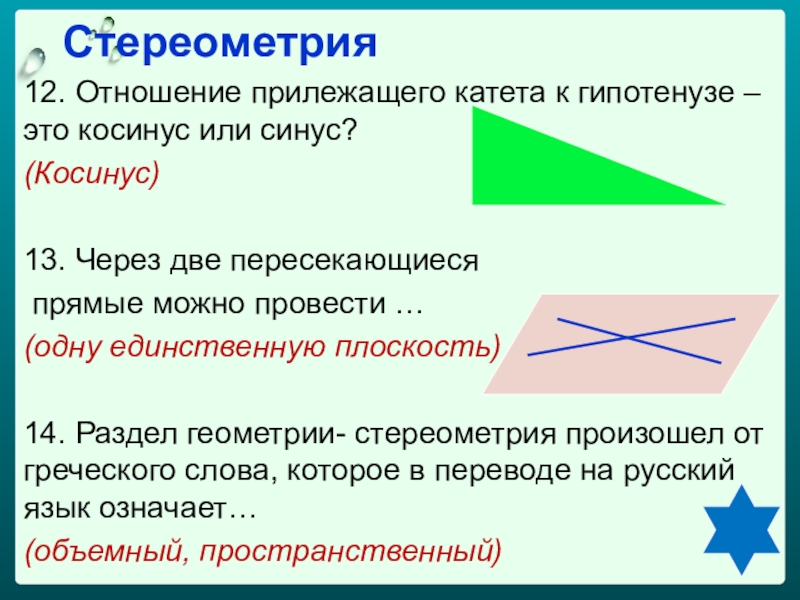 14. Раздел геометрии- стереометрия произошел от греческого слова, которое в переводе на русский язык означает…