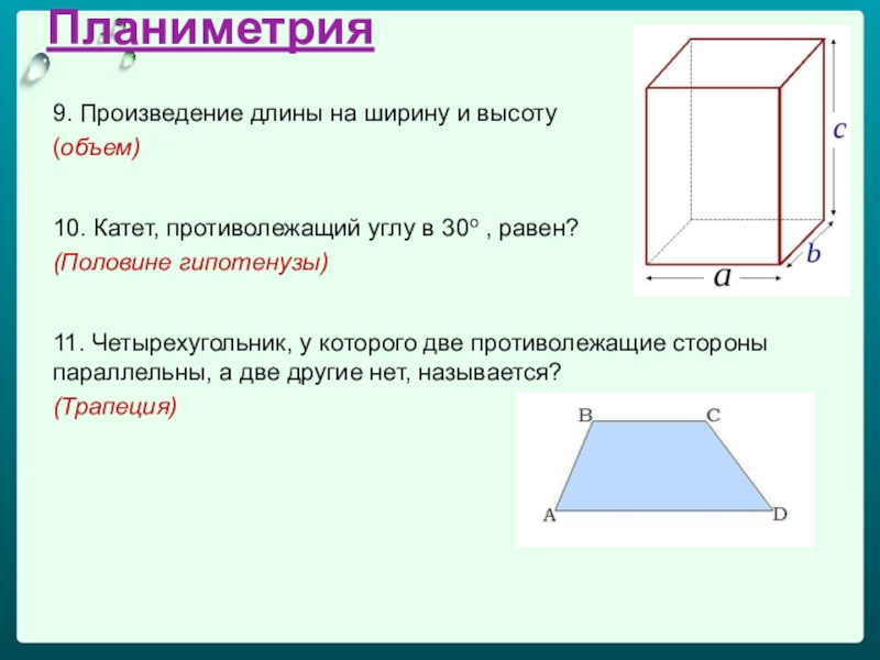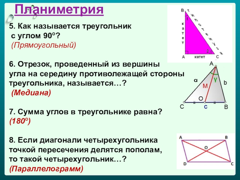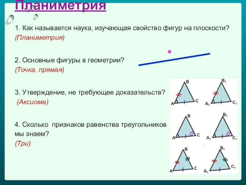 1. Как называется наука, изучающая свойство фигур на плоскости?