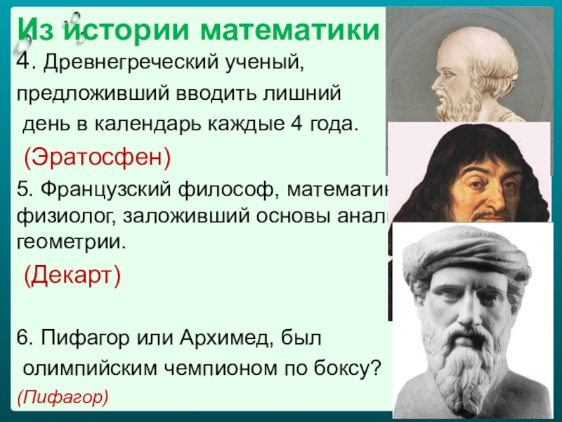 3. Кому принадлежат слова: «Математику уже затем изучать нужно, что она