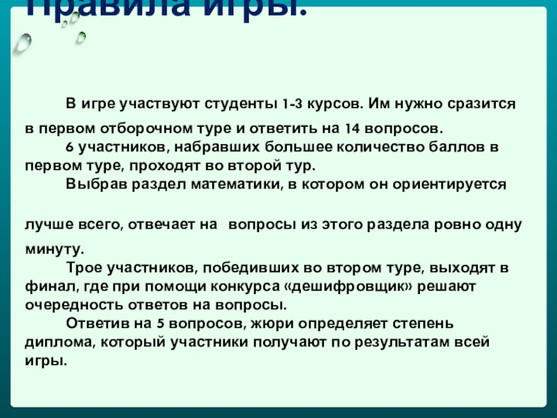 В игре участвуют студенты 1-3 курсов. Им нужно