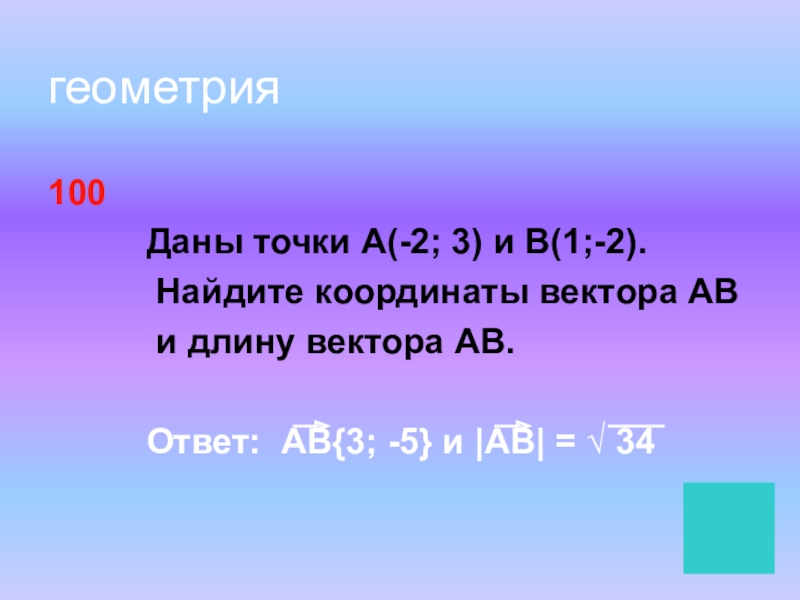 геометрия100     Даны точки А(-2; 3) и В(1;-2).