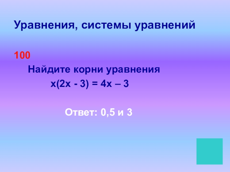 Уравнения, системы уравнений100   Найдите корни уравнения       х(2х - 3)