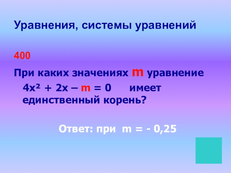 Уравнения, системы уравнений400При каких значениях m уравнение  4х² + 2х – m = 0